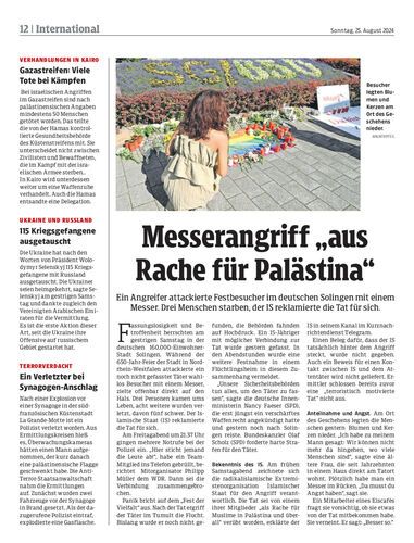 Ein Angreifer attackierte Festbesucher im deutschen Solingen mit einem Messer. Drei Menschen starben, der IS reklamierte die Tat für sich.