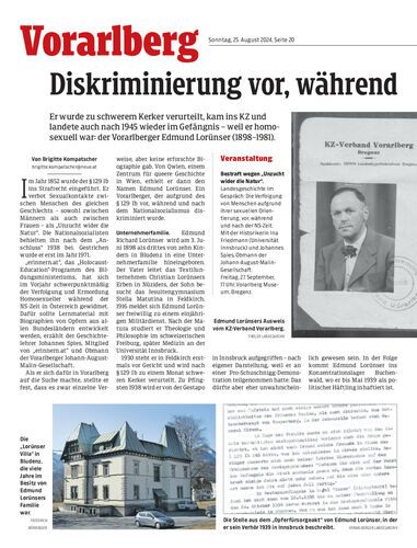 Er wurde zu schwerem Kerker verurteilt, kam ins KZ und landete auch nach 1945 wieder im Gefängnis – weil er homosexuell war: der Vorarlberger Edmund Lorünser (1898–1981).