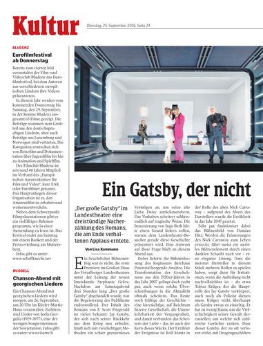 „Der große Gatsby“ im Landestheater: eine dreistündige Nacherzählung des Romans, die am Ende verhaltenen Applaus erntete.