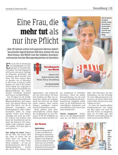 beschreibt Sigrid Hofner (49) ihre Arbeit für das Rote Kreuz. Die NEUE traf die Vollblut-Kranken-schwester bei der Blutspendeaktion in Dornbirn.