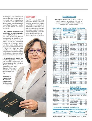 Gabriele Semmelrock-Werzer, erste Frau an der Spitze des Sparkassenverbandes, über künstlich niedrige Zinsen, Bargeld und verfehlte Reglementierung. Von Uwe Sommersguter