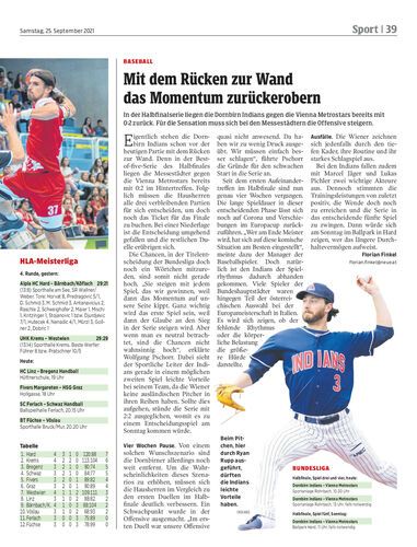 In der Halbfinalserie liegen die Dornbirn Indians gegen die Vienna Metrostars bereits mit 0:2 zurück. Für die Sensation muss sich bei den Messestädtern die Offensive steigern.