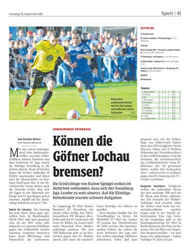Die Schützlinge von Rainer Spiegel wollen im Hoferfeld verhindern, dass sich der Vorarlbergliga-Leader zu weit absetzt. Auf die Eliteliga-Kellerkinder warten schwere Aufgaben.