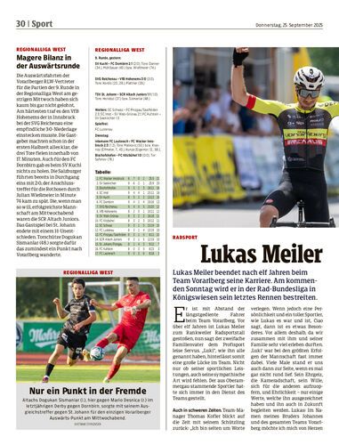 Lukas Meiler beendet nach elf Jahren beim Team Vorarlberg seine Karriere. Am kommenden Sonntag wird er in der Rad-Bundesliga in Königswiesen sein letztes Rennen bestreiten.
