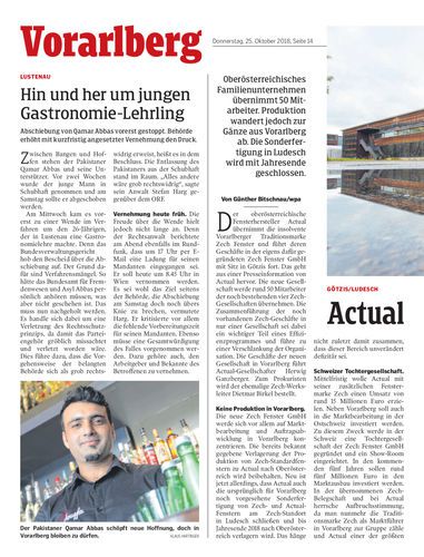 Oberösterreichisches Familienunternehmen übernimmt 50 Mitarbeiter. Produktion wandert jedoch zur Gänze aus Vorarlberg ab. Die Sonderfertigung in Ludesch wird mit Jahresende geschlossen.