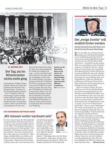 Heute vor 90 Jahren schlitterte die Welt in ihre schlimmste Wirtschaftskrise. Kann sich der Schwarze Freitag wiederholen? IHS-Chef Martin Kocher sieht neue Gefahren. Von Uwe Sommersguter