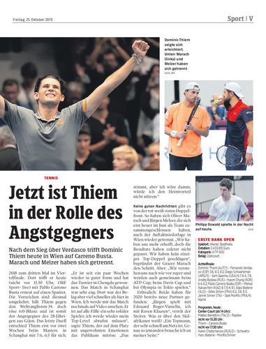 Nach dem Sieg über Verdasco trifft Dominic Thiem heute in Wien auf Carreno Busta. Marach und Melzer haben sich getrennt.