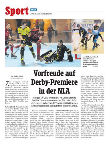 Morgen (18 Uhr) treffen der RHC Wolfurt und der RHC Dornbirn aufeinander. Nach den Erfolgen zuletzt gehen beide Teams gestärkt in das Kräftemessen um die Nummer eins im Ländle.
