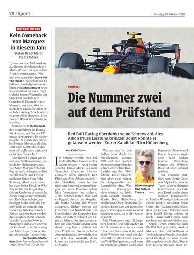 Red Bull Racing überdenkt seine Fahrerwahl. Alex Albon muss Leistung bringen, sonst könnte er getauscht werden. Erster Kandidat: Nico Hülkenberg.