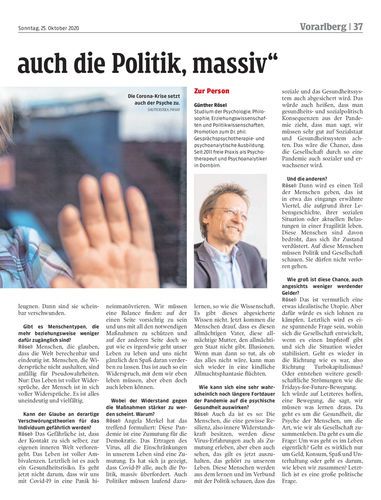 Interview. Der Psychotherapeut und Psychoanalytiker Günther Rösel spricht über die psychische Gesundheit von Menschen in der Corona-Pandemie, diverse Ängste und seine Hoffnung, dass aus der Krise gelernt wird.