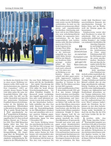SERIE. Mit Donald Trump hat die Außenpolitik der Vereinigten Staaten eine spektakuläre Wende genommen. „Amerika zuerst“ lautet ihre Maxime. Doch so neu, wie viele meinen, ist das gar nicht. Der 45. Präsident belebt nur alte Traditionen wieder.