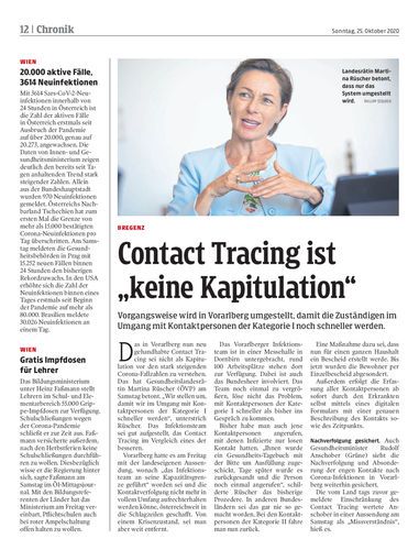 Vorgangsweise wird in Vorarlberg umgestellt, damit die Zuständigen im Umgang mit Kontaktpersonen der Kategorie I noch schneller werden.