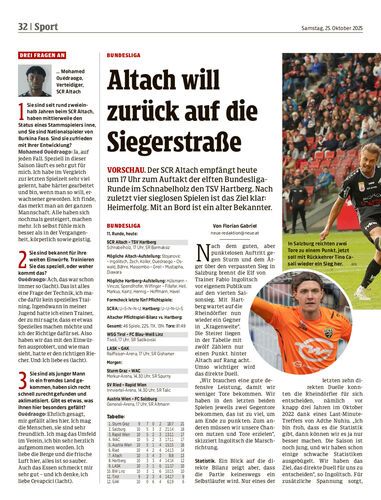 Vorschau. Der SCR Altach empfängt heute um 17 Uhr zum Auftakt der elften Bundesliga-Runde im Schnabelholz den TSV Hartberg. Nach zuletzt vier sieglosen Spielen ist das Ziel klar: Heimerfolg. Mit an Bord ist ein alter Bekannter.