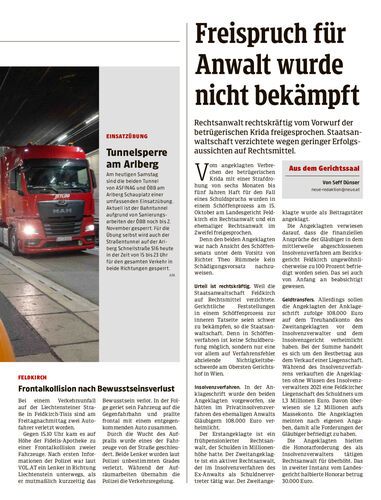 Rechtsanwalt rechtskräftig vom Vorwurf der betrügerischen Krida freigesprochen. Staatsanwaltschaft verzichtete wegen geringer Erfolgsaussichten auf Rechtsmittel.