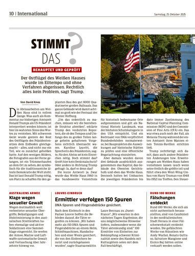 Der Ostflügel des Weißen Hauseswurde im Eiltempo und ohne Verfahren abgerissen. Rechtlich alles kein Problem, sagt Trump.