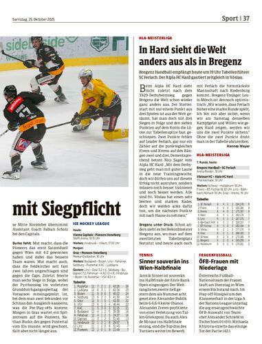 Bregenz Handball empfängt heute um 19 Uhr Tabellenführer SC Ferlach. Der Alpla HC Hard gastiert zeitgleich in Vöslau.