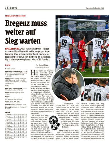 Spielbericht. Zwar kann sich SWB-Trainer Andreas Heraf beim 1:1 zu Hause gegen Kapfenberg über seinen ersten Punk nach seiner Rückkehr freuen, doch die Serie an sieglosen Ligaspielen prolongierte sich auf 20 Partien.