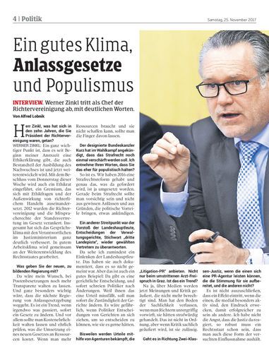 INTERVIEW. Werner Zinkl tritt als Chef der Richtervereinigung ab, mit deutlichen Worten. Von Alfred Lobnik