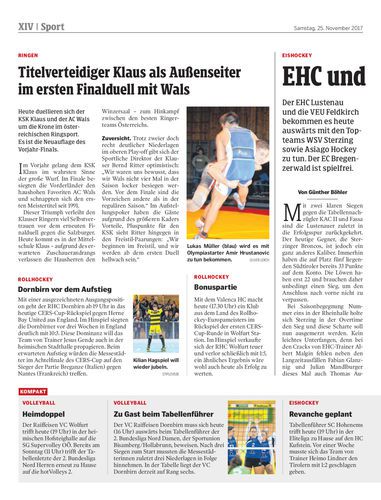 Titelverteidiger Klaus als Außenseiter im ersten Finalduell mit Wals