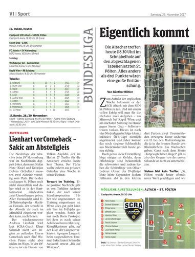 Die Altacher treffen heute (18.30 Uhr) im Schnabelholz auf den abgeschlagenen Tabellenletzten St. Pölten. Alles andere als drei Punkte wären eine große Enttäuschung.