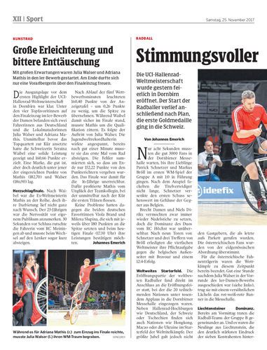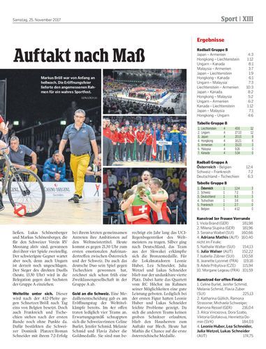 Die UCI-Hallenrad-Weltmeisterschaft wurde gestern feierlich in Dornbirn eröffnet. Der Start der Radballer verlief anschließend nach Plan, die erste Goldmedaille ging in die Schweiz.