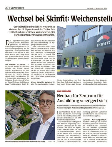 Geschäftsführer Daniel Frei wechselt zu Getzner Textil. Eigentümer-Sohn Tobias Battisti hat sich entschieden, Verantwortung im