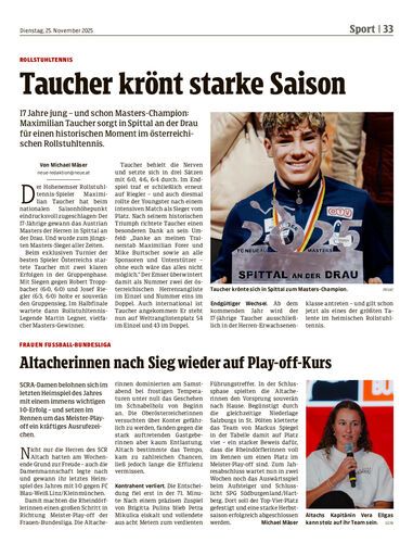 17 Jahre jung – und schon Masters-Champion: Maximilian Taucher sorgt in Spittal an der Drau für einen historischen Moment im österreichischen Rollstuhltennis.