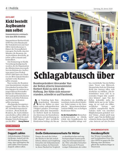 Bundespräsident Alexander Van der Bellen zitierte Innenminister Herbert Kickl zu sich in die Hofburg. Der fühle sich missverstanden, schreibt er auf Facebook.