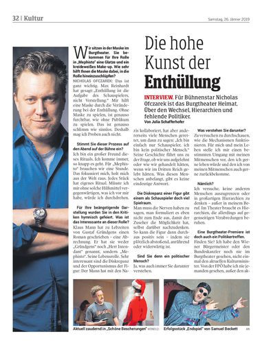Für Bühnenstar Nicholas Ofczarek ist das Burgtheater Heimat. Über den Wechsel, Hierarchien und fehlende Politiker. Von Julia Schafferhofer