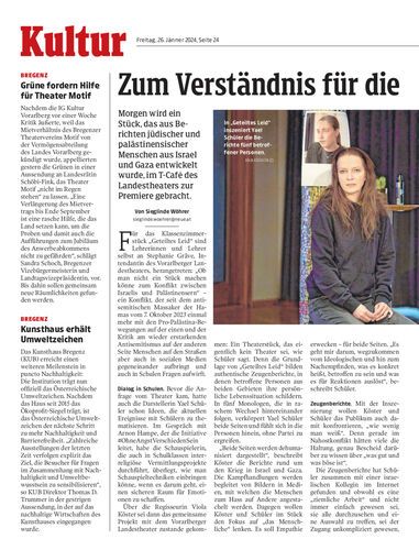 Morgen wird ein Stück, das aus Berichten jüdischer und palästinensischer Menschen aus Israel und Gaza entwickelt wurde, im T-Café des Landestheaters zur Premiere gebracht.