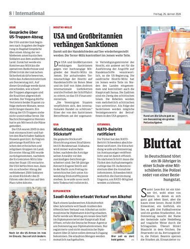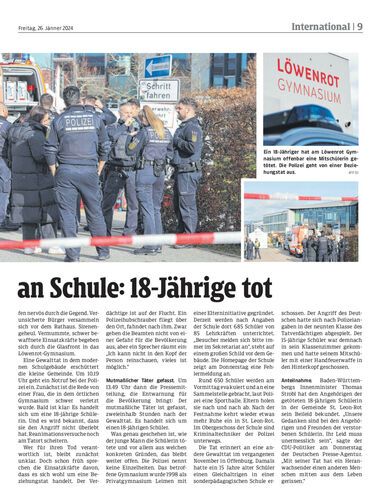 In Deutschland tötet ein 18-Jähriger in einer Schule eine Mitschülerin. Die Polizei redet von einer Beziehungstat.