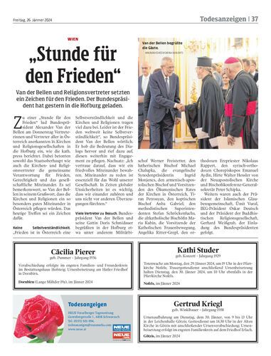 Van der Bellen und Religionsvertreter setzten ein Zeichen für den Frieden. Der Bundespräsident hat gestern in die Hofburg geladen.
