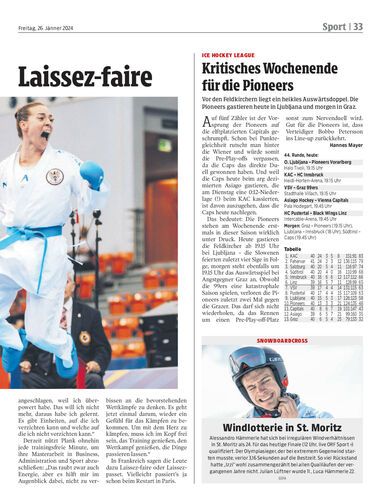 Vor den Feldkirchern liegt ein heikles Auswärtsdoppel. Die Pioneers gastieren heute in Ljubljana und morgen in Graz.