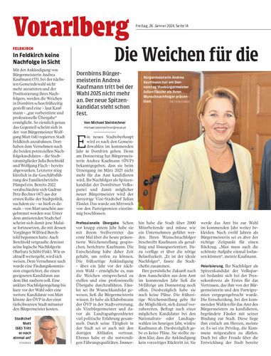 Dornbirns Bürgermeisterin Andrea Kaufmann tritt bei der Wahl 2025 nicht mehr an. Der neue Spitzenkandidat steht schon fest.