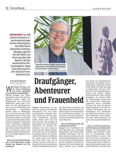 Interview. Vor 100 Jahren besuchte Literaturpreisträger Ernest Hemingway das Montafon. Historiker Andreas Brugger spricht mit der NEUE am Sonntag über die Spuren, die der passionierte Skitourengeher, Jäger und Lebemann in der Talschaft hinterlassen hat.