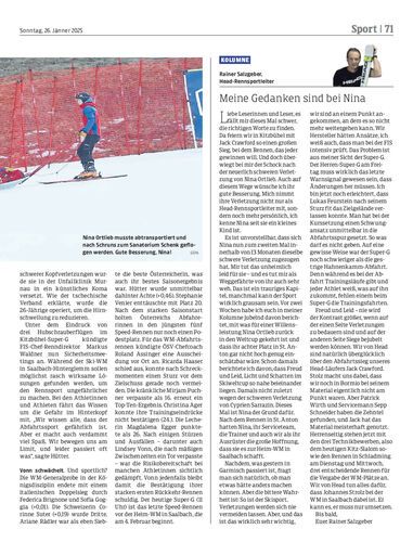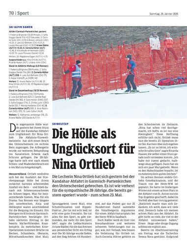 Die Lecherin Nina Ortlieb hat sich gestern bei der Kandahar-Abfahrt in Garmisch-Partenkirchen den Unterschenkel gebrochen. Es ist wie verhext für die sympathische 28-Jährige, die bereits gestern operiert wurde – zum schon 23. Mal.