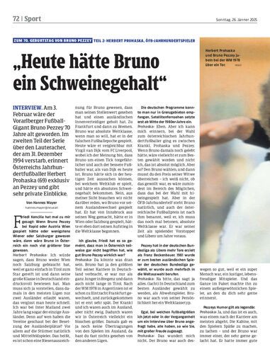 Interview. Am 3. Februar wäre der Vorarlberger Fußball-Gigant Bruno Pezzey 70 Jahre alt geworden. Im zweiten Teil der Serie über den Lauteracher, der am 31. Dezember 1994 verstarb, erinnert Österreichs Jahrhundertfußballer Herbert Prohaska (69) exklusiv an Pezzey und gibt sehr private Einblicke.