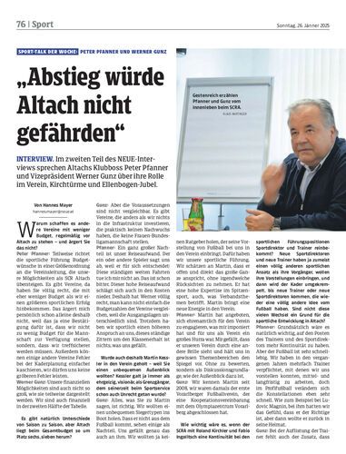Interview. Im zweiten Teil des NEUE-Interviews sprechen Altachs Klubboss Peter Pfanner und Vizepräsident Werner Gunz über ihre Rolle im Verein, Kirchtürme und Ellenbogen-Jubel.