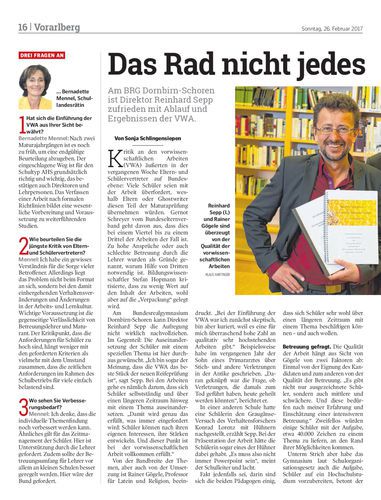 Am BRG Dornbirn-Schoren ist Direktor Reinhard Sepp zufrieden mit Ablauf und Ergebnissen der VWA.