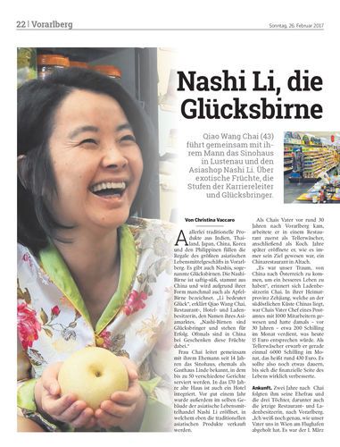Qiao Wang Chai (43) führt gemeinsam mit ihrem Mann das Sinohaus in Lustenau und den Asiashop Nashi Li. Über exotische Früchte, die Stufen der Karriereleiter und Glücksbringer.