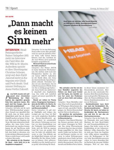 Interview. Head-Rennsportleiter Rainer Salzgeber (49) zieht im Interview ein Fazit über die Ski-WM in St. Moritz. Außerdem spricht er über Shootingstar Christine Scheyer, zeigt auf, dass Kjetil Jansrud nicht in Kategorien wie Glück und Pech denkt. Und nimmt Stellung zu Anna Veiths Zukunft.