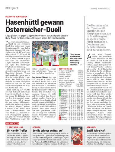 Leipzig nach 3:1 gegen Stöger-Elf Köln weiter auf Champions-League-Kurs. Alaba-Tor beim 8:0 des FC Bayern gegen den Hamburger SV.