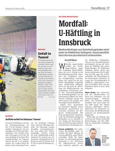 Mordverdächtiger aus Sicherheitsgründen nicht mehr im Feldkircher Gefängnis. Staatsanwältin lässt ihn nun psychiatrisch untersuchen.