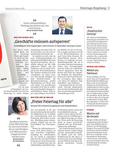 Freiwilligkeit, Feiertagsentgelt, mehr Freizeit. 8.-Dezember-Lösung zu teuer.