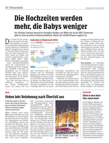 Im Vorjahr kamen deutlich weniger Kinder zur Welt als noch 2017. Dennoch gab es eine positive Geburtenbilanz. Mehr als 45.000 Paare sagten Ja.