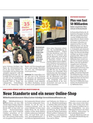 Möbelhandelskonzern Kika/Leiner kündigt Investitionsoffensive an.