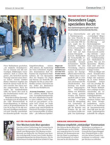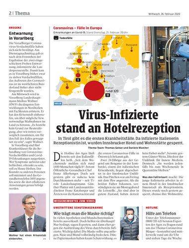 In Tirol gibt es die ersten Krankheitsfälle. Da infizierte Italienerin Rezeptionistin ist, wurden Innsbrucker Hotel und Wohnstätte gesperrt. Thema-Team: Thomas Golser und Daniele Marcher