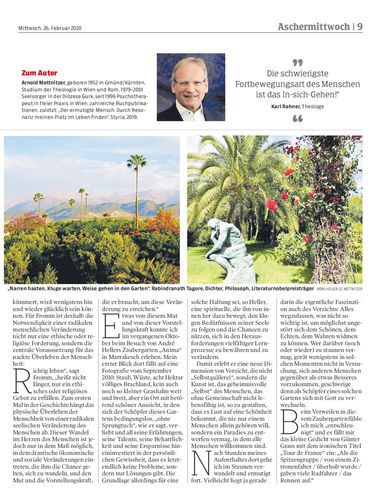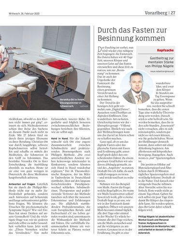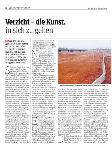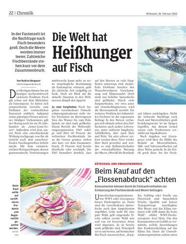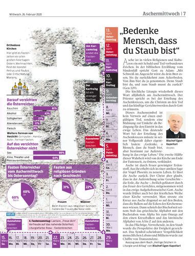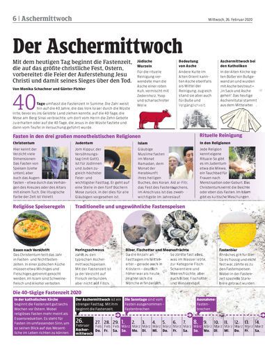 Aschermittwoch. Mit dem heutigen Tag beginnt die Fastenzeit: Über die Regeln des Verzichts in den Religionen, die Kunst, in sich zu gehen, gefährdete Fischbestände und die Frage, wie das Fasten den Körper verändert. Seiten 6–9, 22/23 APA