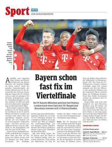 Der FC Bayern München gewinnt bei Chelsea London nach einer Gala mit 3:0. Neapel und Barcelona trennen sich 1:1-Unentschieden.