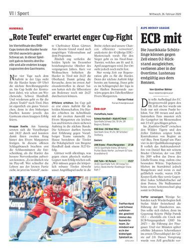 Im Viertelfinale des ÖHB-Cups treten die Harder heute (19 Uhr) auswärts gegen Schwaz an. In dieser Spielzeit gab es bereits drei Duelle und alle endeten knapp zugunsten des Gastteams.